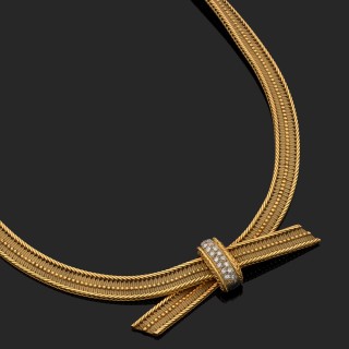 HERMÈS (Attribué à). Clip "noeud" en or jaune 750‰ en forme d ...