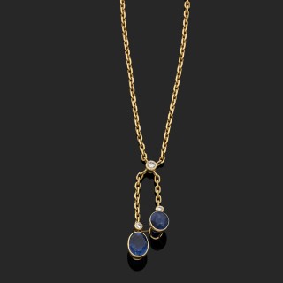 Collier négligé en or jaune 750‰ orné de deux saphirs ovales ser ...