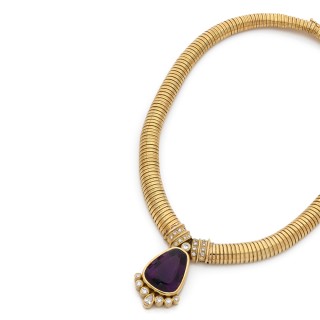 Collier en or jaune 750‰ orné d'un médaillon porte-souvenir oval ...