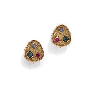 Paire de boucles d'oreilles en platine 850‰ serties de cabochons ...