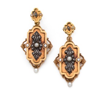 Paire de pendants d'oreilles articulées en or jaune 18k dites "Boulonnaises".Travail régional du XIXe siècle.