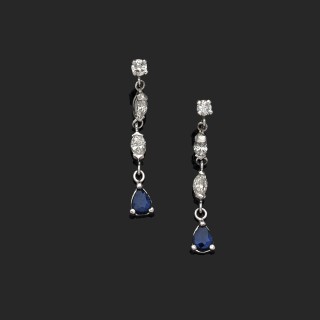 VAN CLEEF & APRELS.Paire de boutons d'oreilles en or gris 585‰ chacun serti d'un diamant poire de 1,74 carat et 1,82 carat.