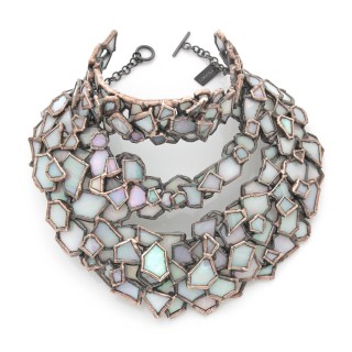 Giorgio VIGNA (born 1955). Large necklace in the shape of a collar, in blackened silver (925‰) and Murano Salviati iridescent glass