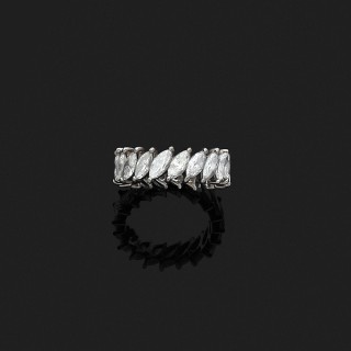 Alliance en or gris 18k, 750‰ ornée de diamants taille navette disposés en biais.Tdd : 48