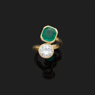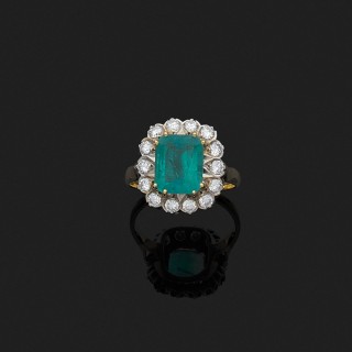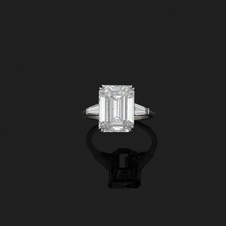 Bague en platine 850‰ ornée d'un diamant taille émeraude monté en solitaire épaulé par deux diamants tapers.Poids brut : 4,5 g