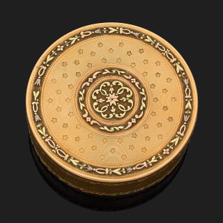 Boîte ronde en ors de trois tons 18k, 750‰ à décor finement cise ...