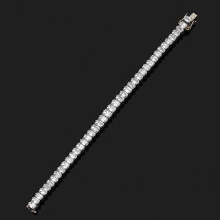 Bracelet ligne en platine 850‰ et or gris 18k, 750‰ orné de 42 diamants taille émeraude.Longueur : 15 cm