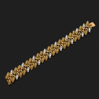 Bracelet torsadé en platine 850‰ orné de lignes sinueuses sertie ...