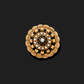 Broche rosace en or jaune 18k, 750‰ ornée de demi-perles.Epoque fin XIXe siècle