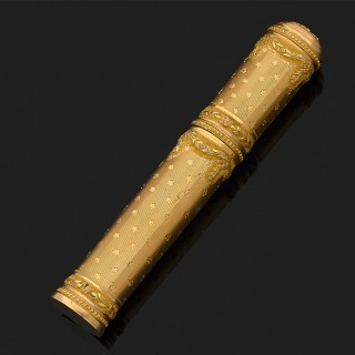 Etui à cire à section ovale en or jaune guilloché et ciselé à décor d'étoiles et guirlandes de laurier.Travail provincial du XVIIIe ...