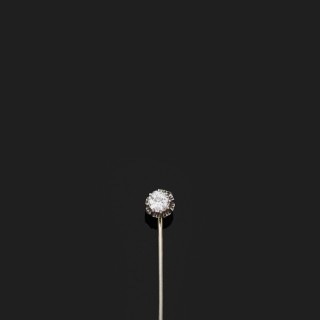 Epingle de cravate en platine et or gris 18k, 750‰ ornée d'un diamant rond de taille ancienne.Poids brut : 1,1 g