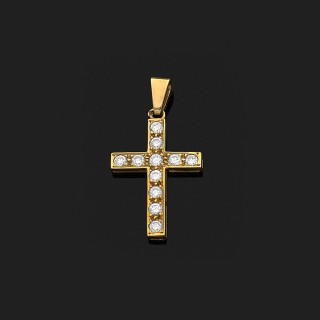 Pendentif articulé figurant une fleur de lys en or jaune 18k, 750‰ surmontée d'une couronne en or gris et rehaussée de diamants tail...