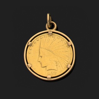 Pendentif articulé figurant une fleur de lys en or jaune 18k, 75 ...
