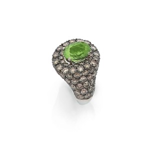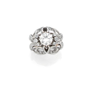 “Pompadour” ring in 18K white gold (750‰) adorned