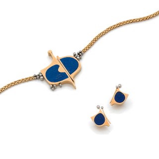 • Modernist set in 18K yellow gold (750‰) and lapis-