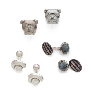 ARTHUS BERTRAND Three pairs of silver cufflinks (925‰): "Têtes de bull