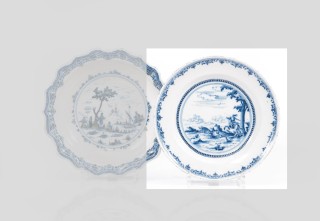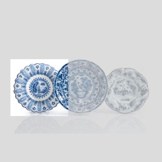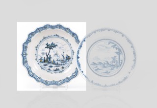Delft Paire de plats ronds à décor en camaïeu bleu dans le sty ...