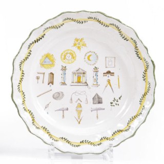 MoustiersAssiette à bord contourné à décor polychrome de petits bouquets de fleurs noués.Marquée : OL.F en bleu.Atelier d’Olérys.XVI...