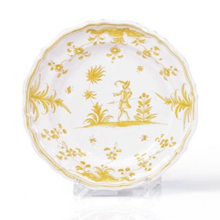 MoustiersJatte circulaire à bord contourné à décor polychrome au centre de marchands levantins dans un médaillon, l’aile décorée de ...