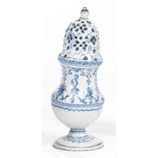Sud-OuestSucrier saupoudroir de forme balustre à décor en camaïeu bleu de rinceaux feuillagés.XVIIIe siècleH.20,5 cm
