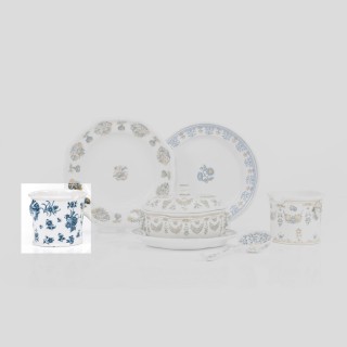Savone Porte-perruque à décor en camaïeu bleu d’amours dans un ...