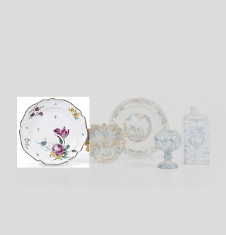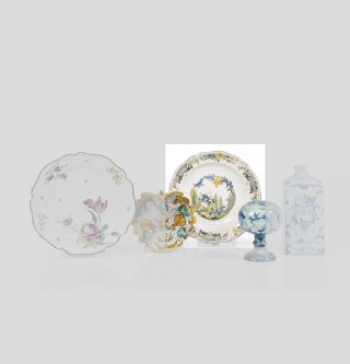 Moustiers et Saint-CloudUne fourchette à manche en faïence de Moustiers et un couteau à manche en porcelaine tendre de Saint-Cloud à...