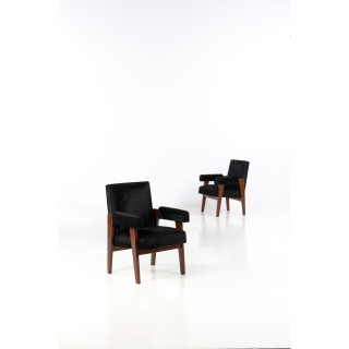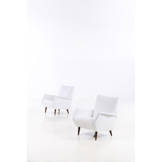 Gio Ponti (1891-1979) Pair of armchairs Wood and fabric Cassina edition Creation date: circa 1964 H 87×L 71 ×P 97 cm Pro...