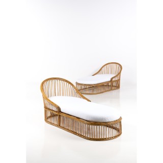Travail italien (XX) Pair of daybeds Rattan and fabric Creation date: circa 1950-1960 H 86×L 182×P 87 cm