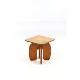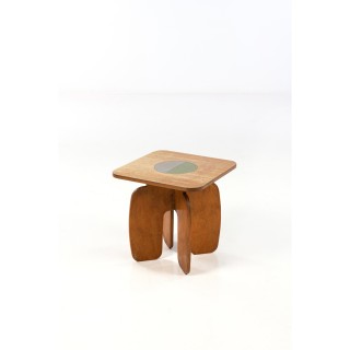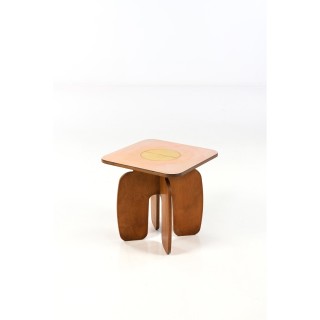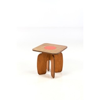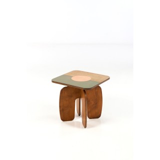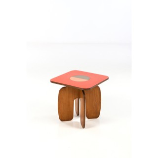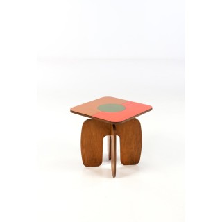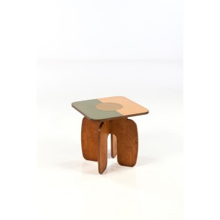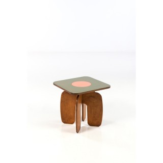 Ettore Sottsass (1917-2007) Side table Molded plywood and tinted and stratified wood Numbered, out of ten, beneath the tabletop Crea...