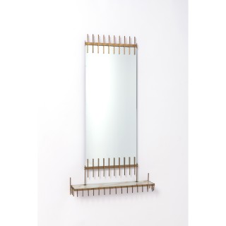 Ico Parisi (1916-1996) Wall-mounted console and mirror Walnut wood and mirror Creation date: circa 1950 H 28×L 85×P 35,5 cm...