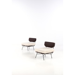 Runar Engblom (1908-1965) Pair of armchairs Ash wood and sheepskin Boman Edition Creation date: 1950 H 108×L 85×P 86,5 cm<...