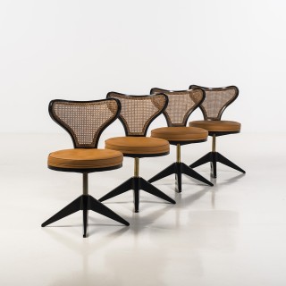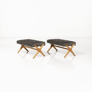 ƒ T.H. Robsjohn-Gibbings (1905-1976) Paire de tabourets Bo ...
