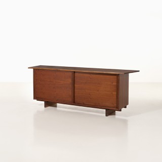 George Nakashima (1905-1990) Cabinet suspendu Noyer, chêne e ...