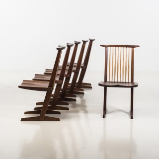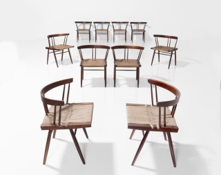 George Nakashima (1905-1990) Grass-seated chair Suite de six ...