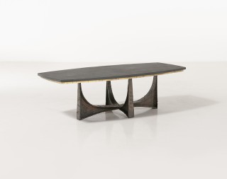 ƒ Paul Evans (1931-1987) Table basse Acier et ardoise Pi ...