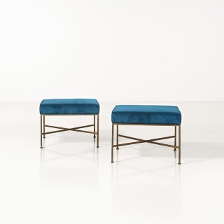 ƒ Paul McCobb (1917-1969) Paire de tabourets Laiton et vel ...