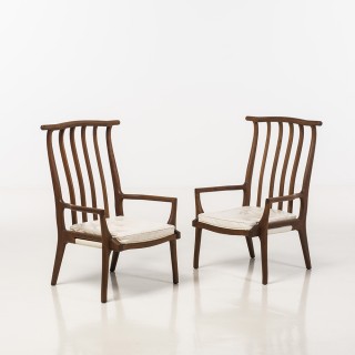 ƒ Kipp Stewart (né en 1928) Paire de fauteuils Noyer, roti ...