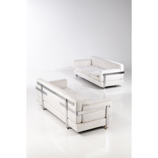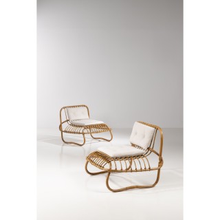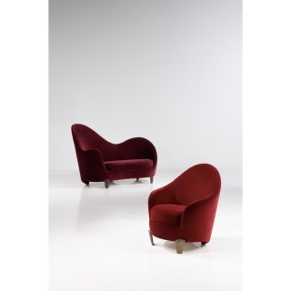Paul Geoffroy (20th c.) Pair of lounge chairs and footstool