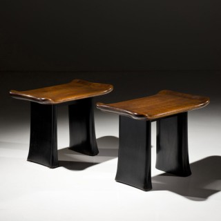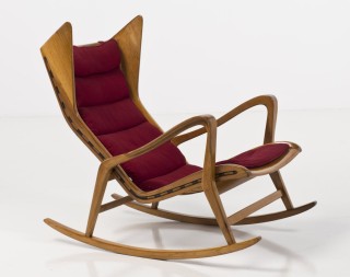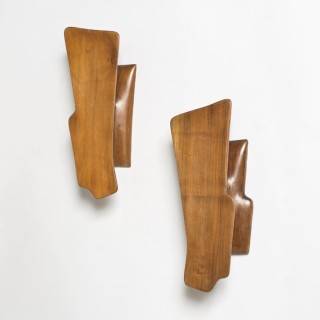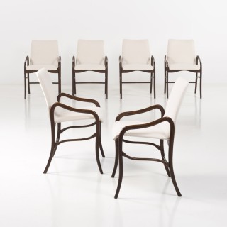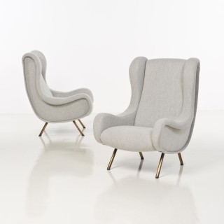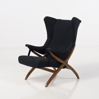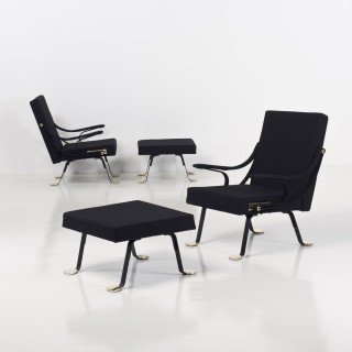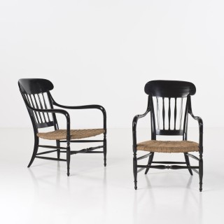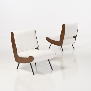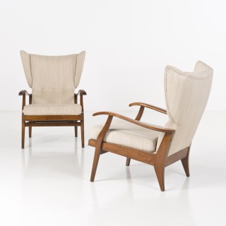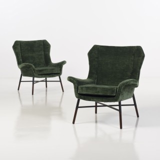 Model 836 Pair of armchairs Lacquered plywood, fabri ...