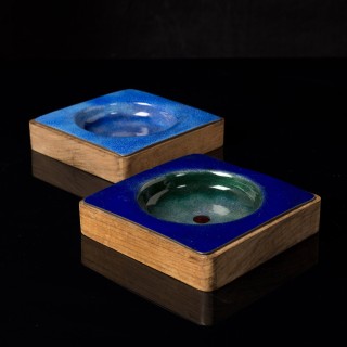 Il sestante Set of two ashtrays Wood and enamelled c ...