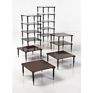 Set of 14 stacking tables Lacquered wood and walnut plywoo ...