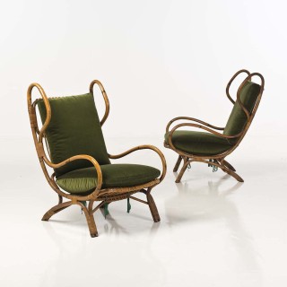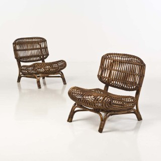 Gio Ponti (1891-1979) Paire de chauffeuses Bambou Edition ...