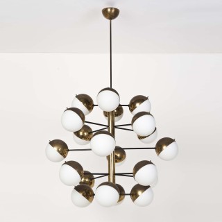 Stilnovo Lustre à 20 lumières Laiton et verre Edition Stil ...