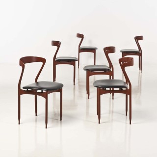 Travail italien Suite de six chaises Bois laqué et skaï Da ...