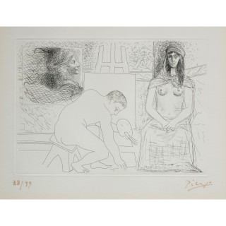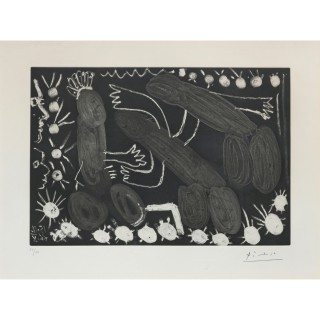 Pablo Picasso (1881-1973) Sur la scène: Roi et Couple-Phallus - 1966