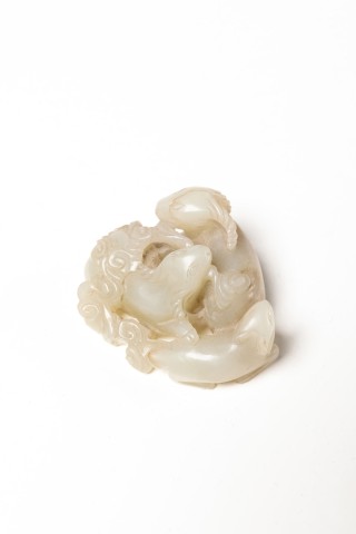 Celadon jade (nephrite) group, two billy goats and a small one i