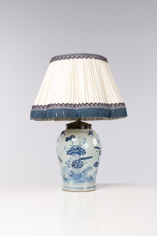 Porcelain baluster vase decorated in blue underglaze with pond o
