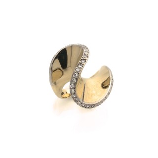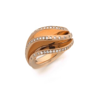 "Tank" ring in 18k yellow gold (750‰) with rolls, paved with cir