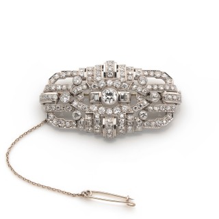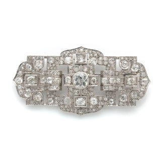 Art Deco plate brooch in platinum set with round and baguette-cu