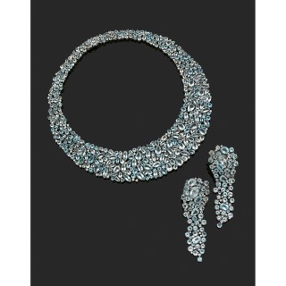 Demi-parure in 18k (rhodium plated) yellow gold (750‰) adorned w